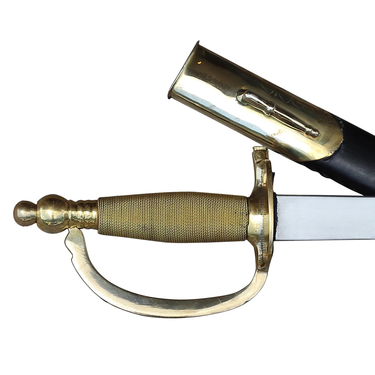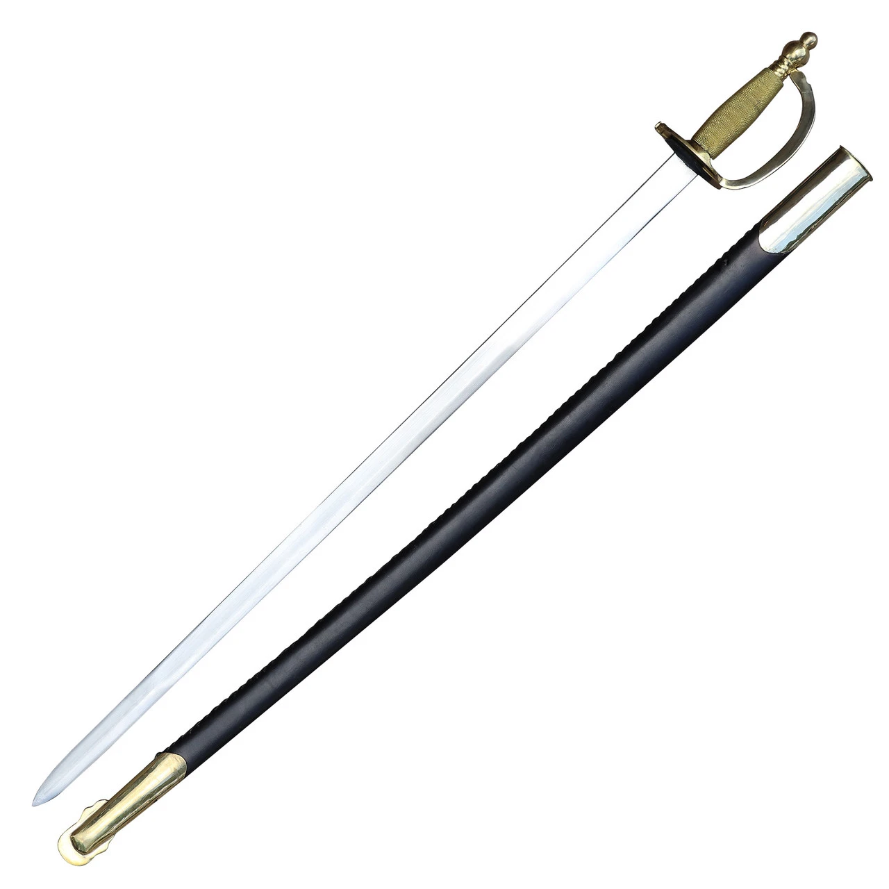 Features:Replica Model 1840 US Army NCO SwordBlade Material: Carbon Forged Steel; OiledHandle Material: Wood, Brass Wire-wrappedPure Brass Guard and Pommel100% Genuine Leather-Wrapped Scabbard Included Specifications:Overall Length: 38.5 inchesBlade Length: 32 inchesHandle Length: 6.5 inches