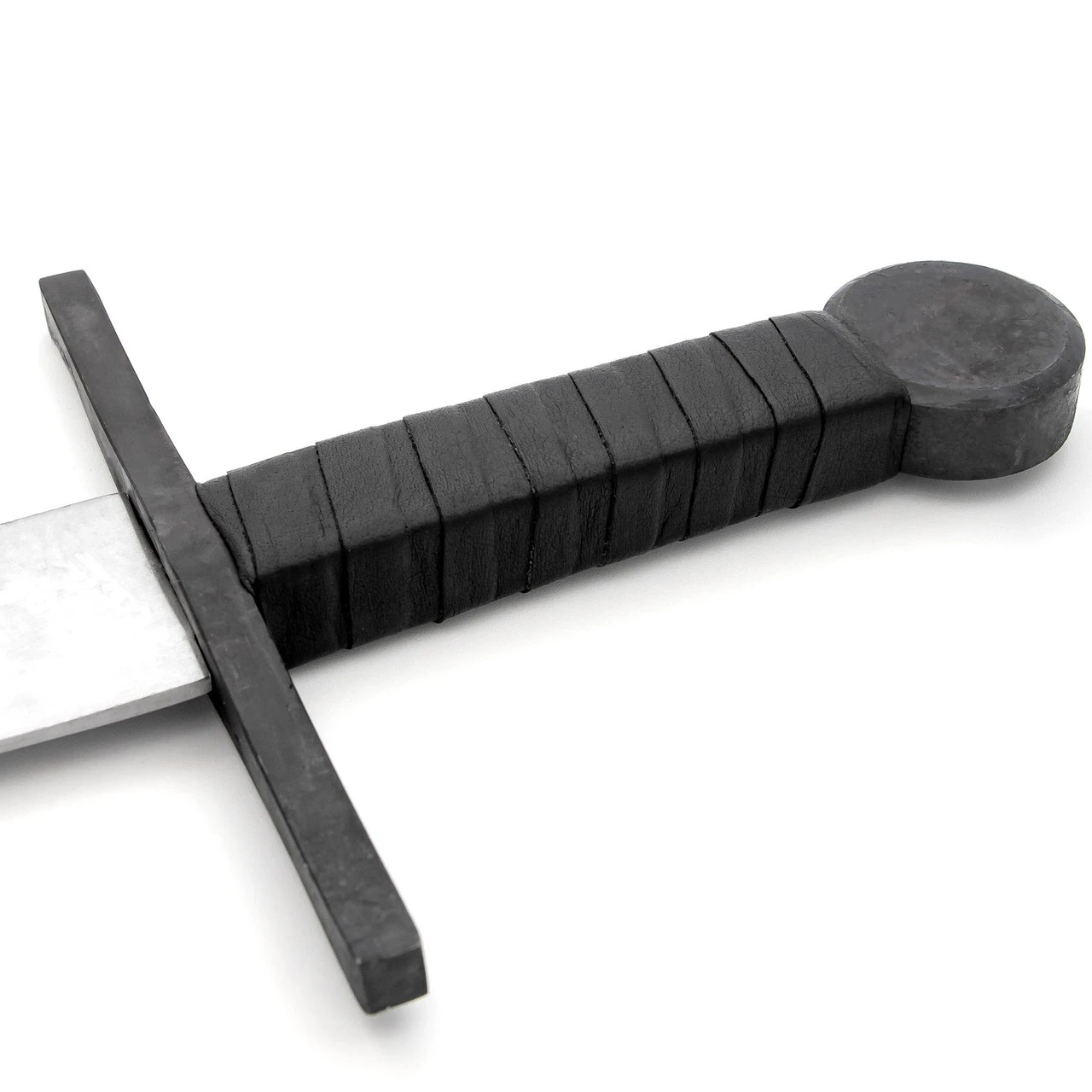 A strong sense of justice does not follow heroes; it guides them, painting the path ahead in valor. The knight who fights alone fights with honor, even if that code of honor is incomprehensible to anyone else. The Antihero Templar Sword is a functional sword composed of 1095 high carbon with black leather wrapped handle. This sword has a darker finish on the guard and hilt. The sparring sword comes with a black genuine leather sheath equipped with a belt loop. The blade is a full 33.5 inches long so this sword is definitely full sized. Overall Length: 41 Inches. Weight: 4.15 lbs.