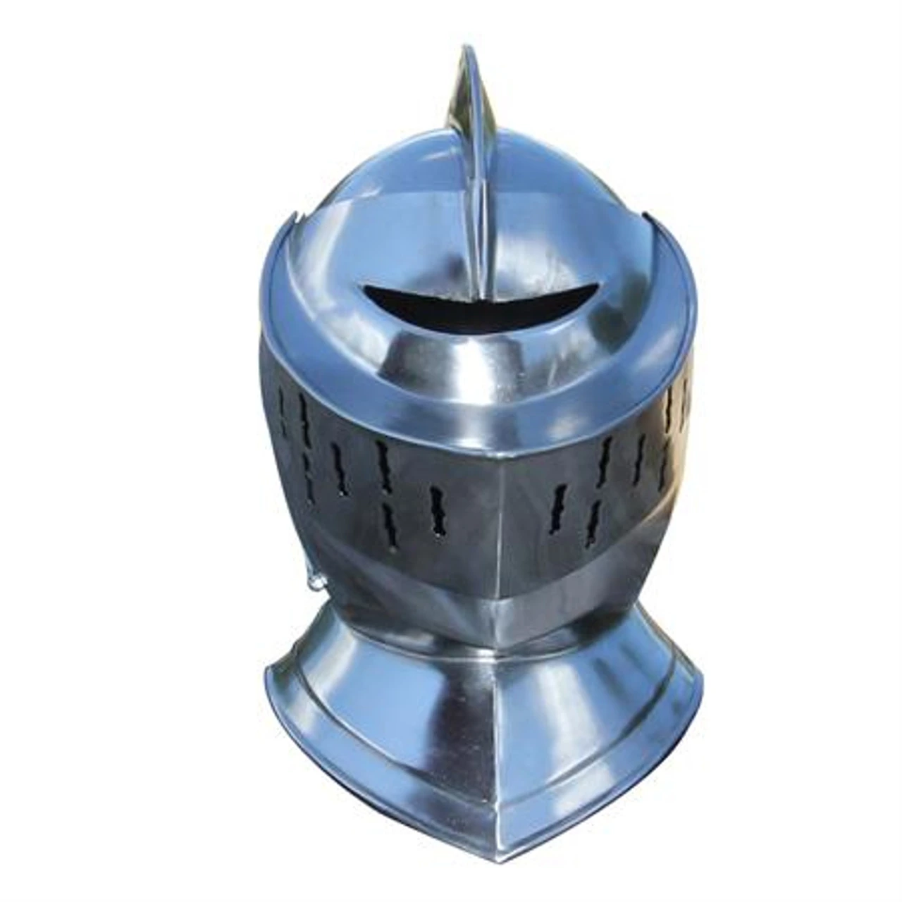 Your princess is waiting alone in her castle. Guarding the treasure and preventing her from escaping is the ferocious and evil dragon that you must defeat. With this steel closed helmet protecting your head and incredible hairdo, there is no doubt youll be able to slay the fearsome beast and win the heart of the beautiful princess! This Closed Helmet is the perfect accessory to finish your strapping medieval wears. Featuring a fully-functional opening visor and made of impenetrable steel, youll be sure to be the envy of all of your friends when you wear this fashionable helmet. Perfect for any LARP Event, Renaissance fair, or to display as an impressive collectable.