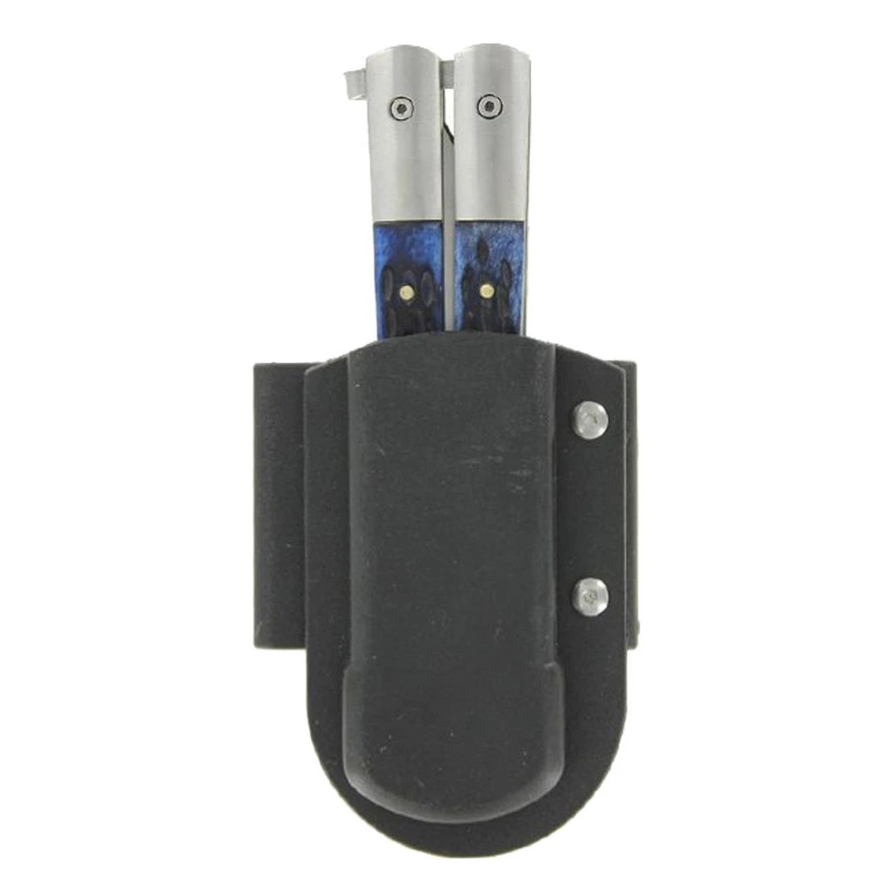 This customer butterfly is eye catching especially with its Damascus steel blade and its a tanto. JACK POT! The Damascus is made from 1095/15N20 Alloy Steel that creates this handsome Ladder Pattern. The Rockwell rating is around 54 to 55 with 176 blade layers. This durable blade comes sharp and is double pinned. The handle has a steel frame with ABS textured mounts for a double walled construction. A safety latch is provided for locking the handle both open and closed. The ABS sheath has a belt loop for transporting your blade. Overall Length: 8.75 Inches.