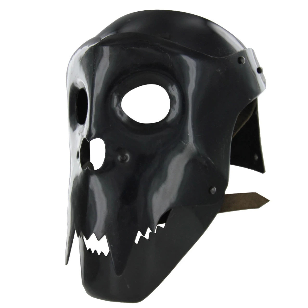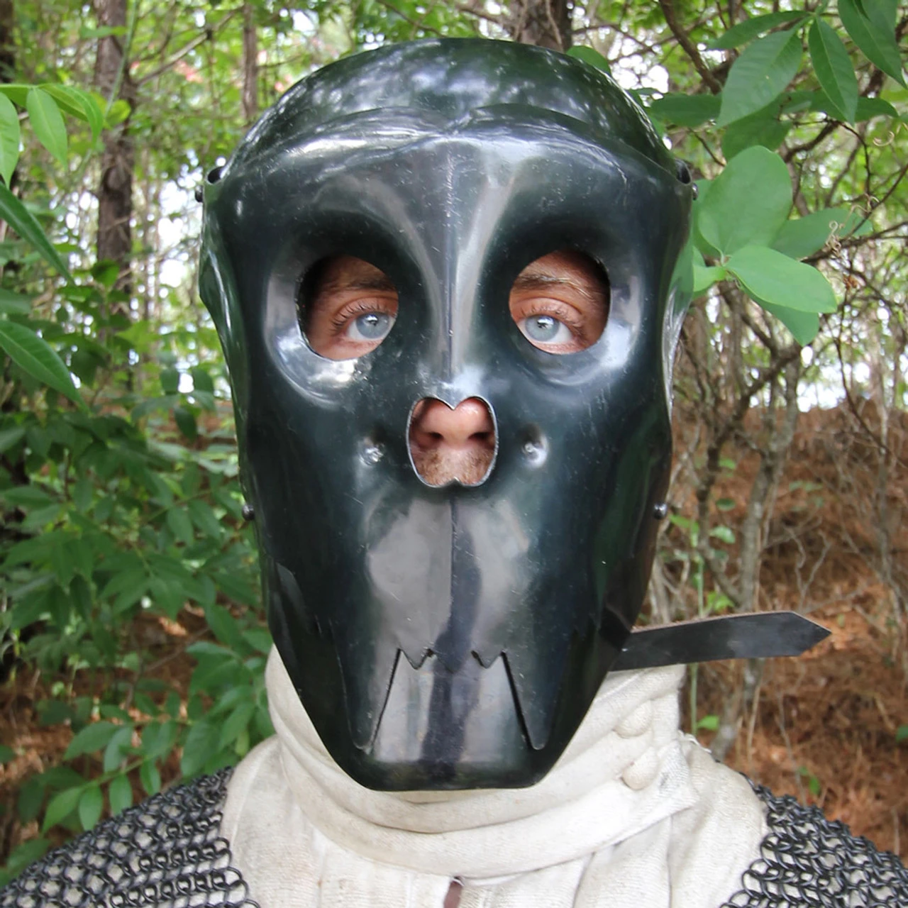 Strike fear into those who would dare cross you. The moment you step out on the battlefield gaze out at the crowd. Mask your identity with the Dark Vampire Arcana 20g Fantasy Helmet. No one needs to know why you are there or who you are there for. Own your character and become the Dark Vampire plus the movable jaw and fangs help. This helmet comes with a Riveted High-Quality and adjustable Suede Leather Liner with Chinstrap and authentic Buckle. There are cutouts for eyes and nose. Constructed of 20g mild steel this fantasy helmet is a must have to complete your costume.