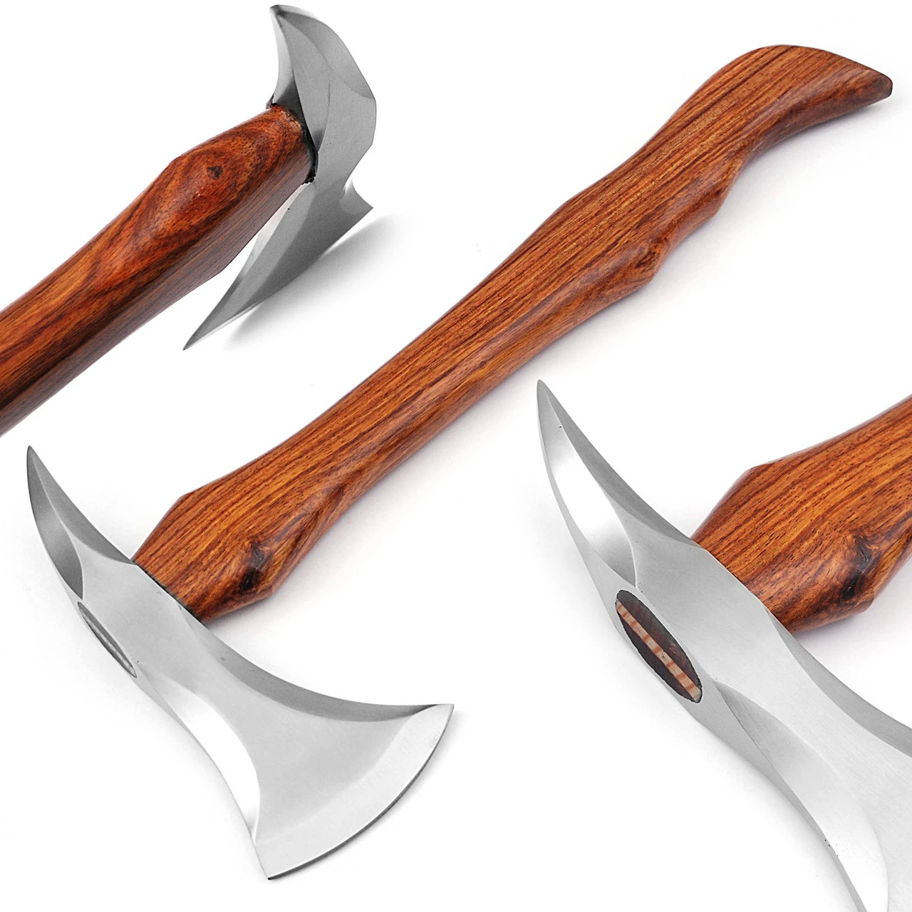 Break through tough terrain with ease to reach your treasure with our trusty Diamond Miner pickaxe. The head of this fine pickaxe is hand forged from high carbon steel, and has a gleaming polish finish. The sharpened blade can clear through brush, while the pointed poll can tip through the ground with little issue. Sheesham Heartwood, known for its strength and durability, is what makes up the sturdy handle. The handle has been contoured and smoothed for a firm grip, and stained and sealed to give a gorgeous pecan finish. This pickaxe is the perfect companion for your next camping trip. Overall Length: 18.25 inches, Blade Length: 4 inches