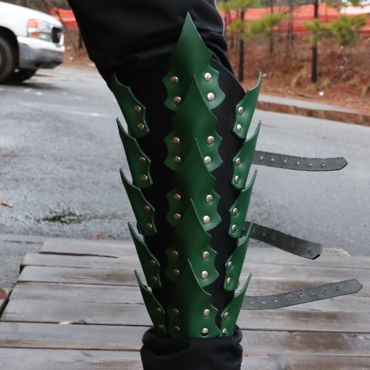 Be the first to review “Drogo’s Fury Dragon Scale Adjustable Leather Leg Greaves | Black And Green |” Cancel reply