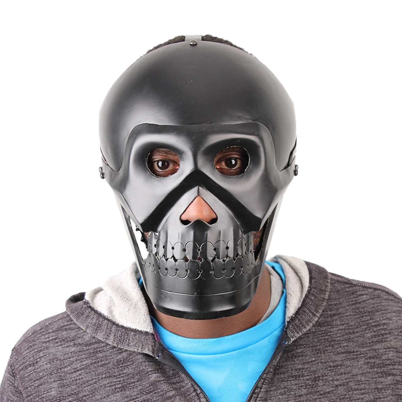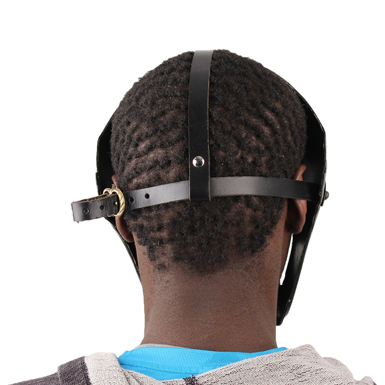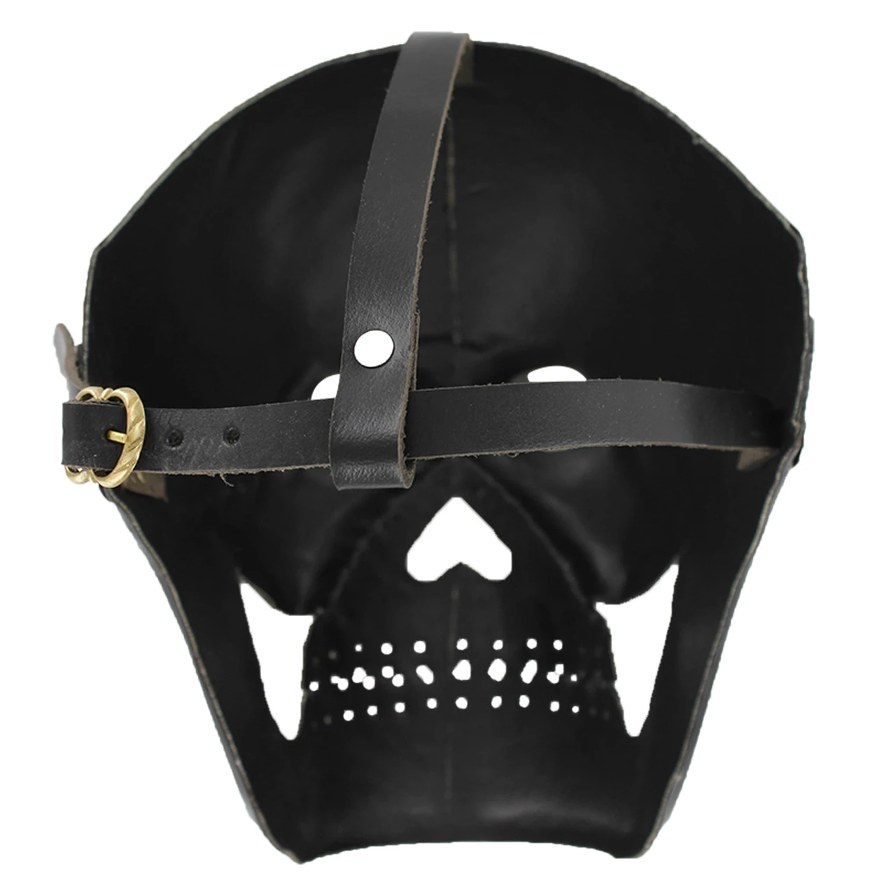 This facial mask is constructed of hand forged 20 gauge mild steel and painted with a black finish to reduce rusting. This mask comes with leather suede straps with a brass buckle. There is also belt loops so you can add an adjustable strap. There are cutouts for eyes, nose, and several for the mouth.