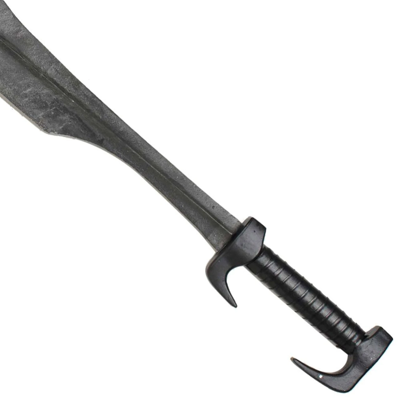 The Spartan Battle Sword is constructed of carbon steel and weathered with a stone finish to give that distinct battle worn look. The pommel and guard are made of cast aluminum and painted black. The handle is wrapped with faux leather wrapping to make the grip more comfortable for a firm hold. Overall Length: 34.25 Inches.