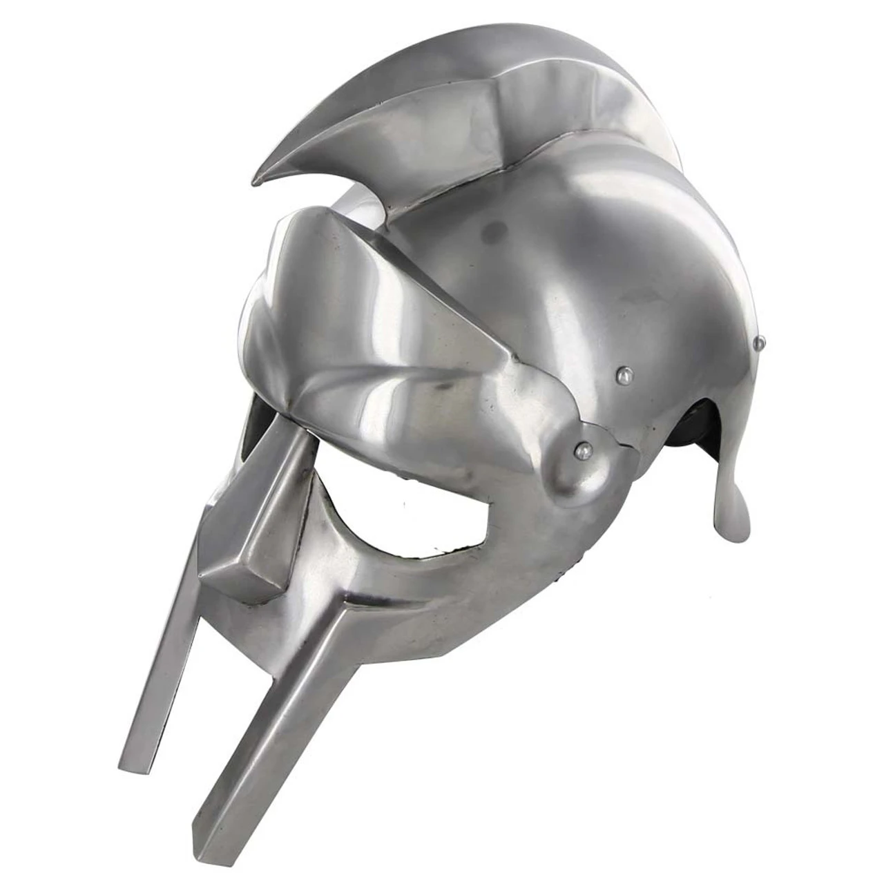 This fierce helmet is a perfect representation of this simple but effective tactic. It is constructed from 20 gauge steel with a polished finish. Paired with a great set of armor you will be prepared to fight in the arena. Overall Length: 14 Inches.