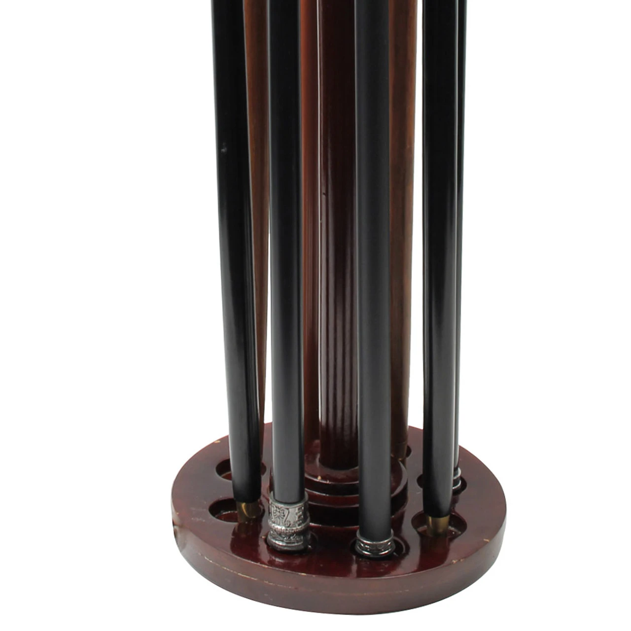Our Holder of Charm Cane Stand is a wonderful way to store and display all of your unique and fashionable canes. Whether you are an avid cane user or just a tenacious collector, this stand is right for you. Crafted from high quality wood, our stand is nice and sturdy with a solid construction. The maximum amount of canes that can be held in the stand is eight. The base of the cane stand also has eight symmetrical holes to keep the canes neat and organized. This stand can double as a place to keep umbrellas or the occasional walking stick. Set this fine piece in your foyer or office as a decorative place to store your collection with style. The rich color of the wood brings a warm natural state while adding a certain dynamic and presence to any room.