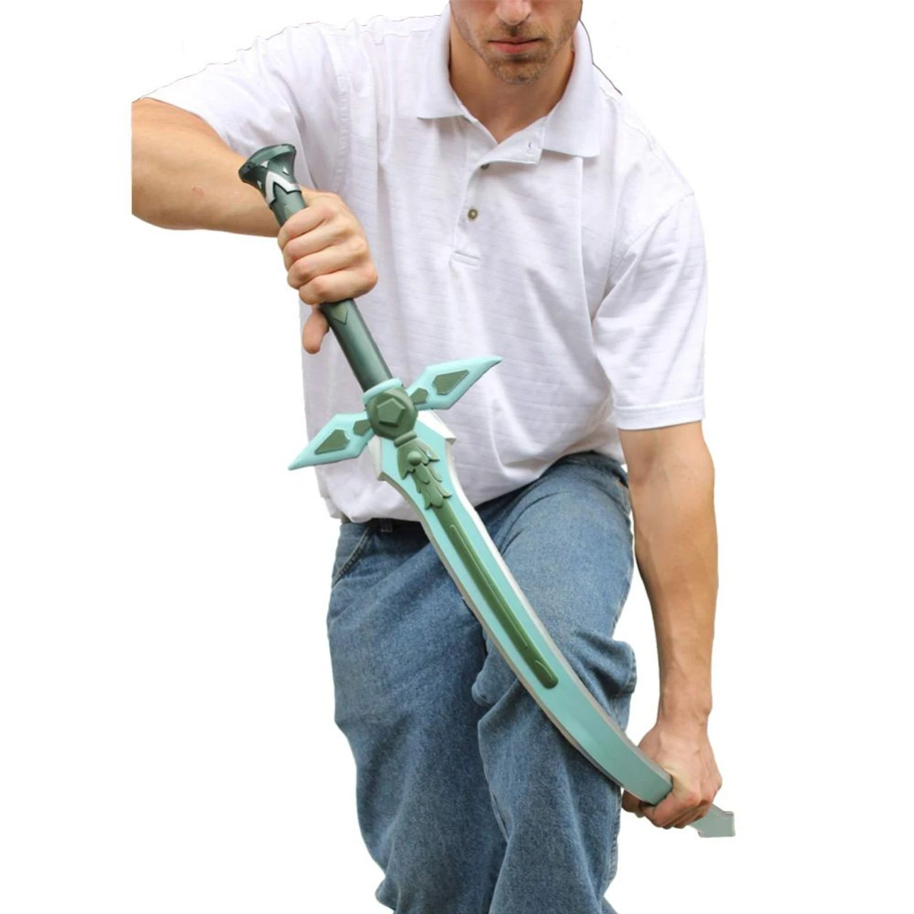 This sword is out of durable polyurethane with a 10mm inner core and well balanced. Painted with impeccable detailing this sword will not disappoint if you are an avid SAO fan. Overall Length is 42.50 Inches.