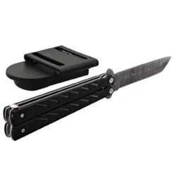 Black Butterfly Balisong Knife With Hard ABS Sheath | Tanto Point Blade | Damascus Steel