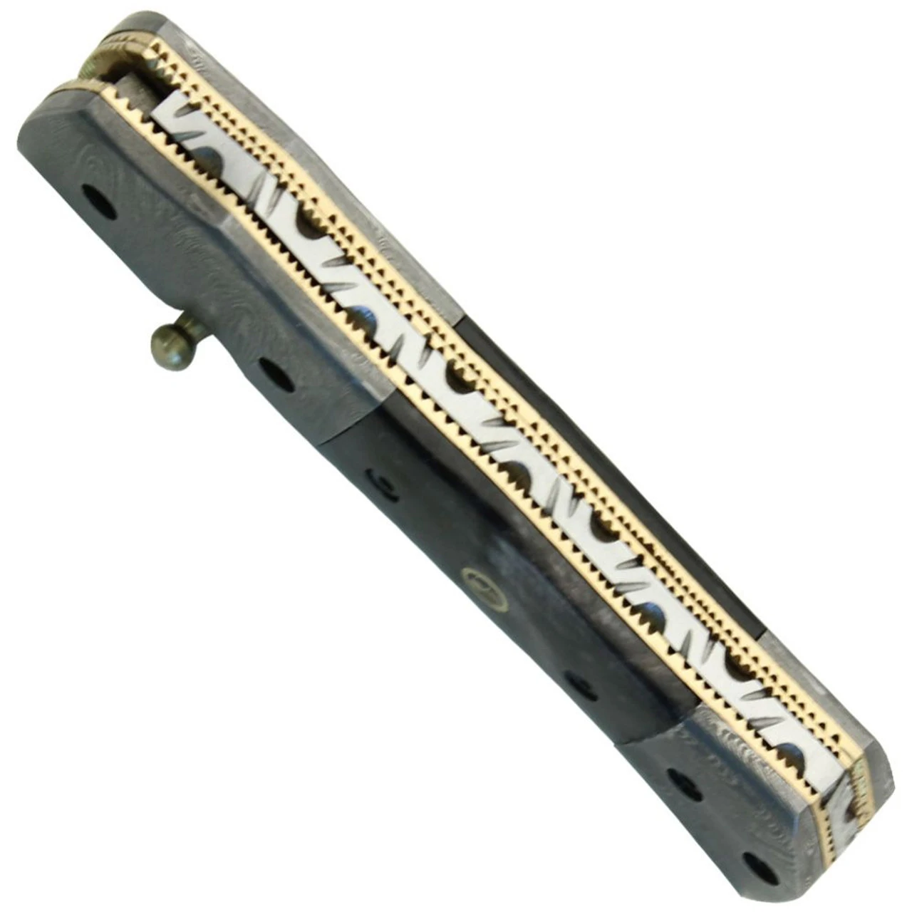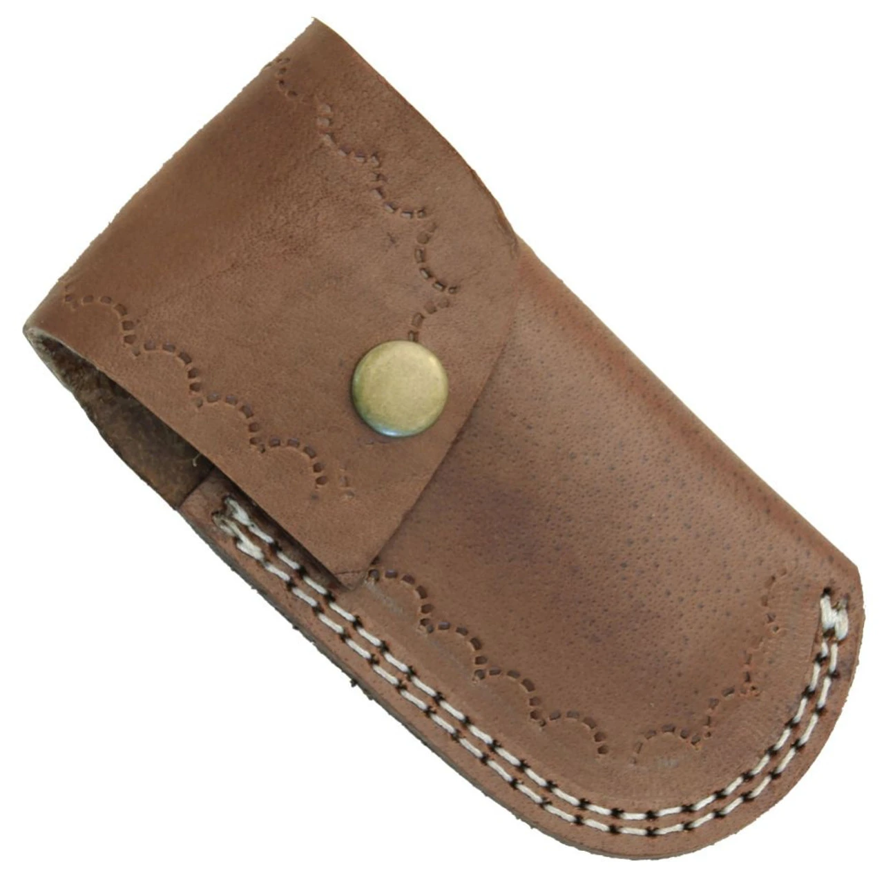 The Damascus folding knife is hand crafted with such care you will not be disappointed. Hand carved bone handle and an overall length of 8.25 inches which includes a leather sheath, this knife is such a great deal.