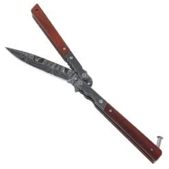 From the battlefield to the urban jungle, this gorgeous Damascus Steel Kukri hunting knife is the RIGHT fit! The rippling effect seen on the blade is made from a blend of 1095 and 15N20 steel that has been folded together over and over approximately 280-350 times, and has a Rockwell Hardness rating between 54-56 so you know it is made to last. The spine of the blade has a saw back design that carries from the tip to the handle. A Damascus steel guard keeps your hand from slipping off the smooth contoured camel bone handle with brass and leather inserts. The handle is capped with a Damascus pommel. A tooled leather sheath with belt loop comes included, and is embossed with a snakeskin pattern. Overall Length: 15 inches, Blade Length: 10.125 inches