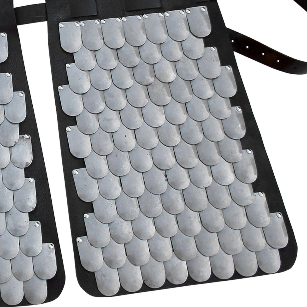 The scales on this skirt are rivets together in horizontal rows that adhere them to the leather backing. The leather belt is also made from leather with a 60 inch length. Skirts such as this gave extra protection to your lower half, thighs, and depending on your size the knees. This piece is all handmade with steel scales that have been oiled to prevent rusting. Complete your Roman military attire with this great skirt.Overall Length: 21.75 Inches.