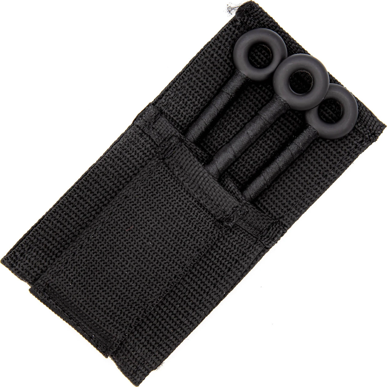 The ultimate ninja needs an arsenal of weapons at their disposal that are both stealthy and excellent quality. This set comes with 3 ninja kunai so small they can fit in the palm of your hand. Donโt let their size fool you though; they are made from cast metal with a perfect weight and balance. Each kunai handle is wrapped in ribbon just like the ones seen in the popular Naruto anime series. Included with this set is a black nylon pouch with a belt loop on the back for convenient and stealthy carry. Overall Length: 5.25 inches, Blade Length: 2.75 inches