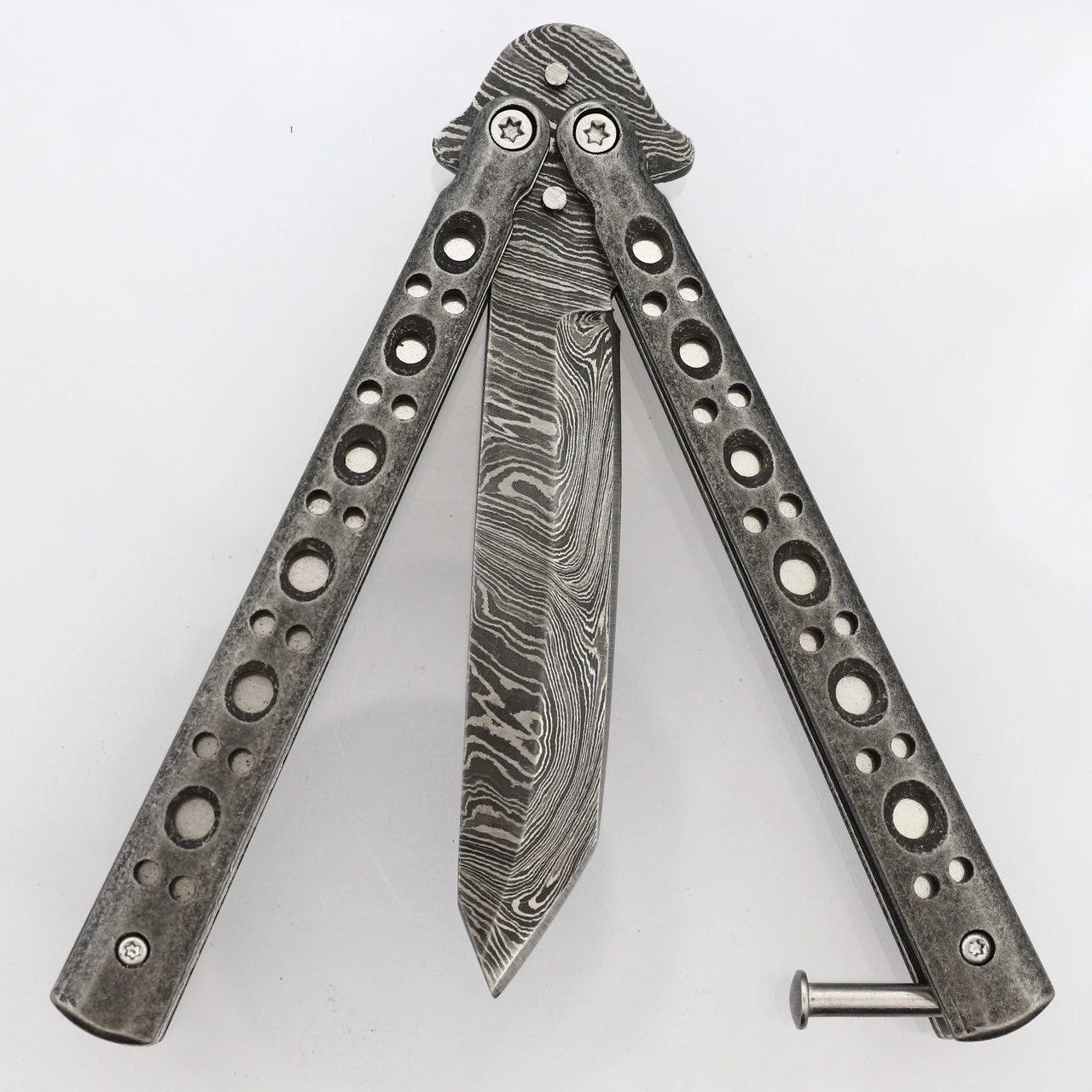 Be the first to review “Steel Coal Strike Butterfly Knife | Damascus Steel Tanto Point Blade” Cancel reply