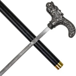 Pearl Courier Chinese Folklore Dragon Derby Style Handle Pewter Finish Costume Walking Sword Cane