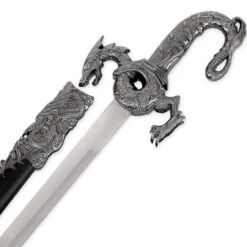 Sea Of Flames Dragon Serpent Silver Ceremonial Royal Dynasty Saber Sword W/ Hard Scabbard