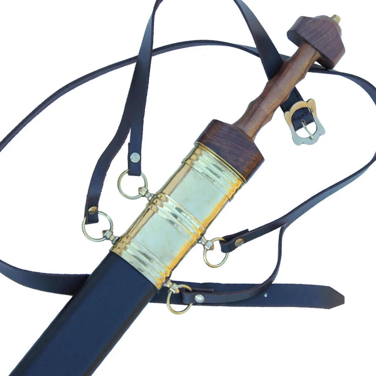 The Roman Empire was one of the of the longest reigning empires in the history of mankind. The rule lasted for over 2,000 years and wasnt at any point, in danger of being overthrown. Much of this dominance was due to the amount of man power that the empire was able to provide and also the advancements in weaponry. Swords like the Warriors Return Roman Gladius Sword were one of the advances in weaponry that made people stop and take notice. With the solid wooden handle, much of the weight was taken off of the sword for easy wielding. The square pommel helps give the sword a sense of solidity without cracking the blade in intense battles. The blade is constructed of carbon steel with a factory edge. Included is a sheath that has been hand stitched with leather covering a wooden scabbard. Fine brass fittings and double lashing rings on both sides to facilitate hip or back carry by means of cord or straps of your choosing. The chape at the end of the scabbard also comes in brass to mimic the same design as the locket. Get the Warriors Return Roman Gladius Sword to accent your costume in your next re-enactment.